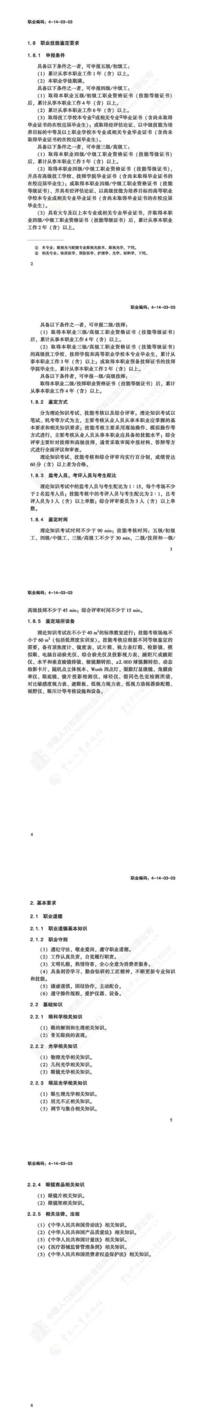 附件一:国家职业技能标准眼镜验光员(2018版)