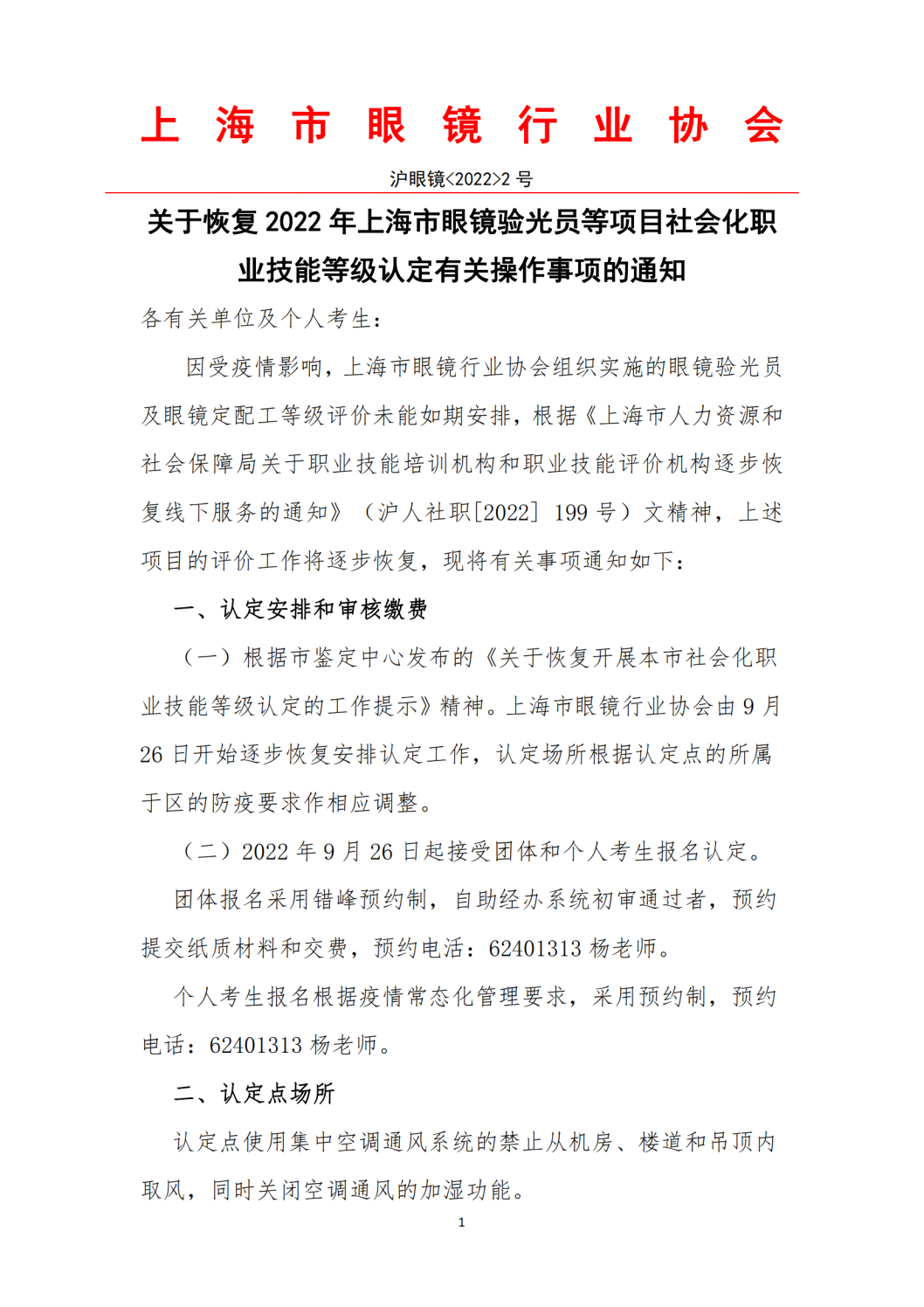 关于恢复 2022 年上海市眼镜验光员等项目社会化职业技能等级认定有关操作事项的通知