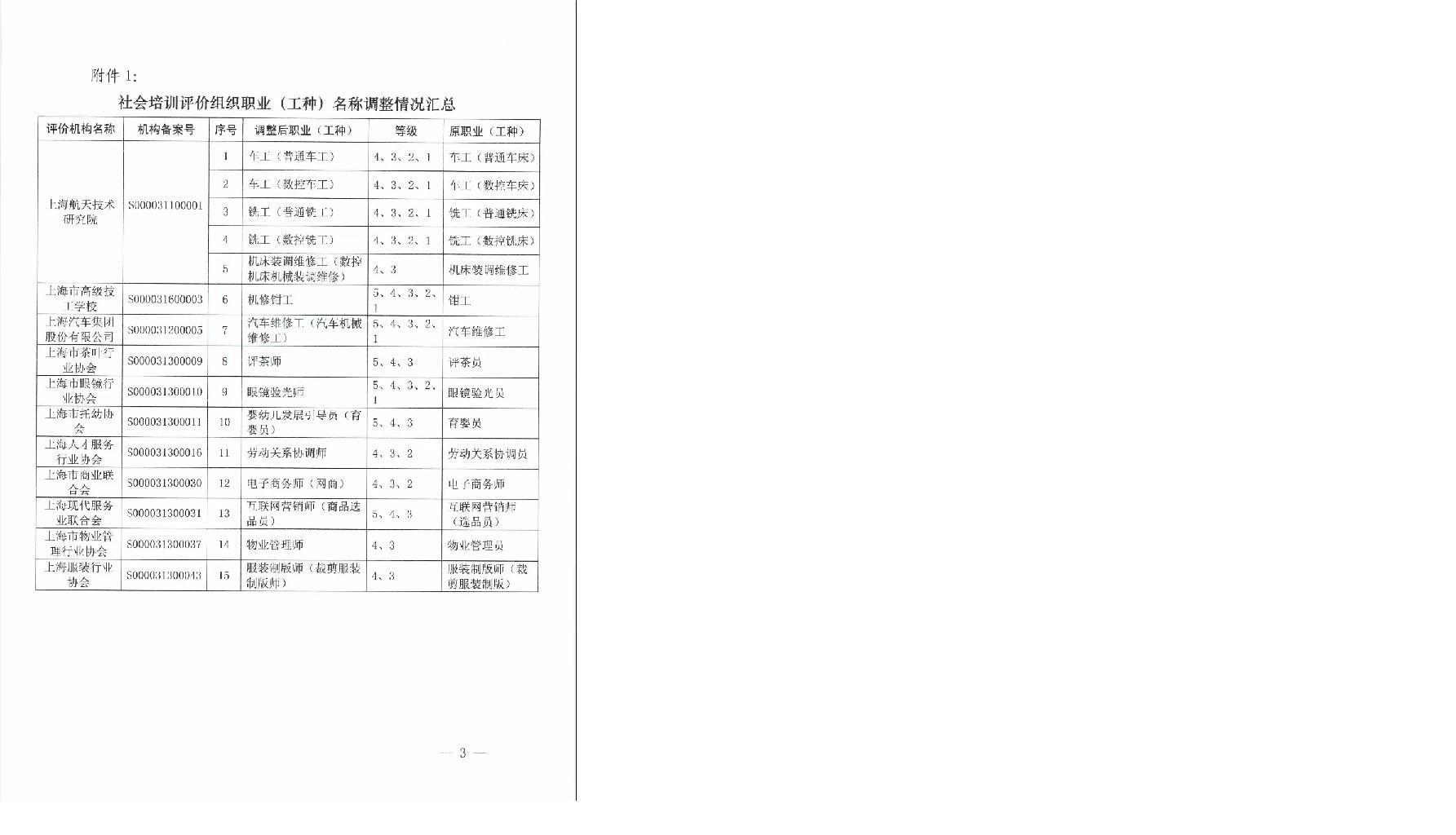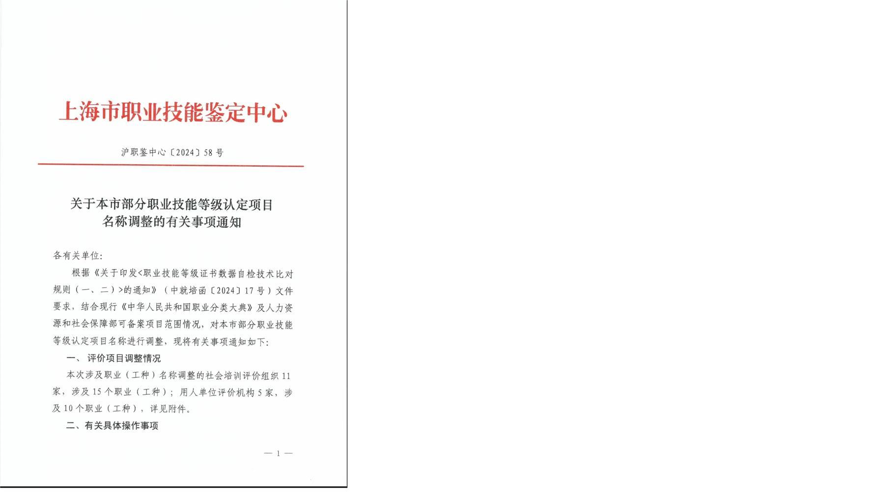 关于本市部分职业技能等级认定项目名称调整的有关事项通知