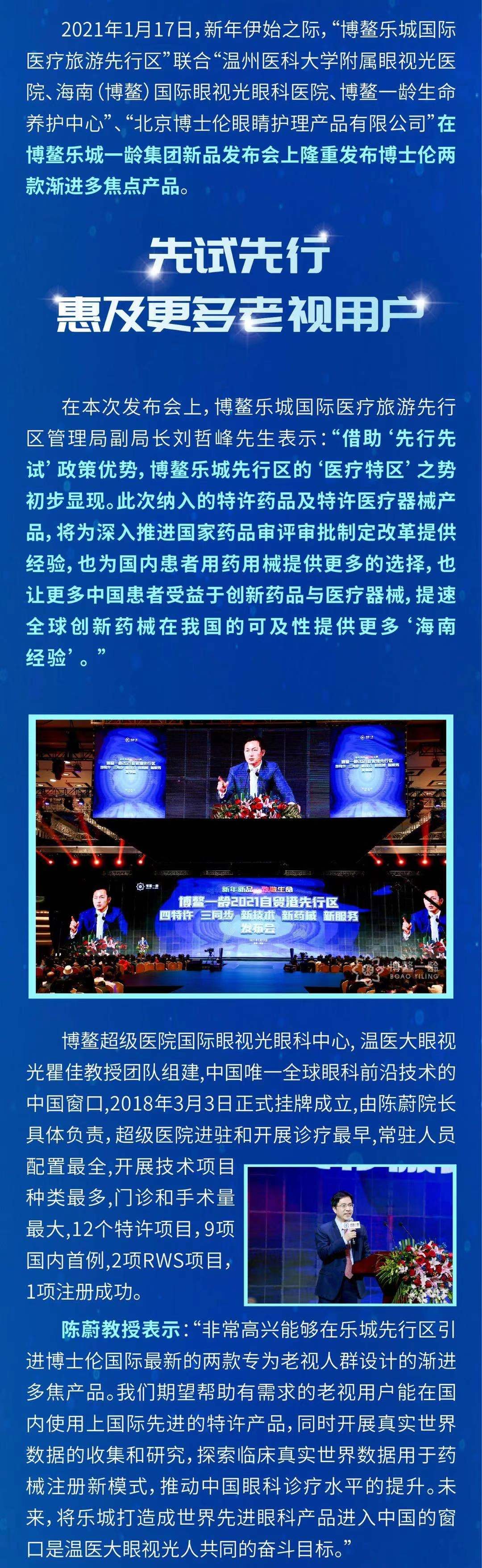 博士伦两款渐进多焦点新品成功进驻博鳌乐城眼视光中心