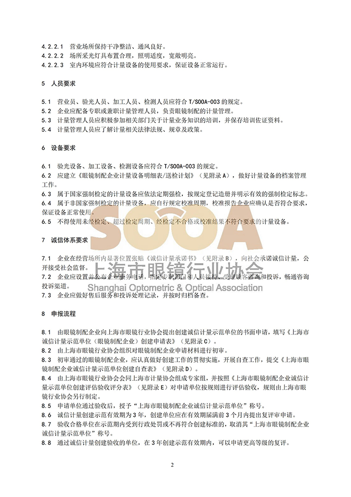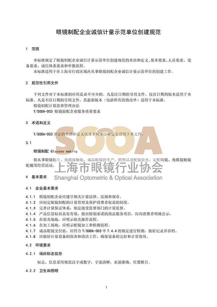 T/SOOA190005-2020 团体标准《眼镜制配企业诚信计量示范单位创建规范》