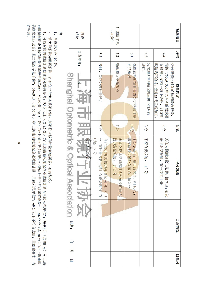 上海市眼镜制配行业诚信计量示范单位