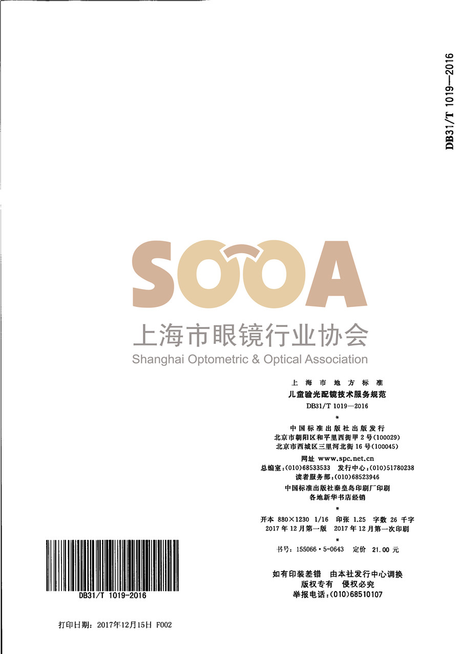 DB31/T1019-2016《儿童验光配镜技术服务规范》
