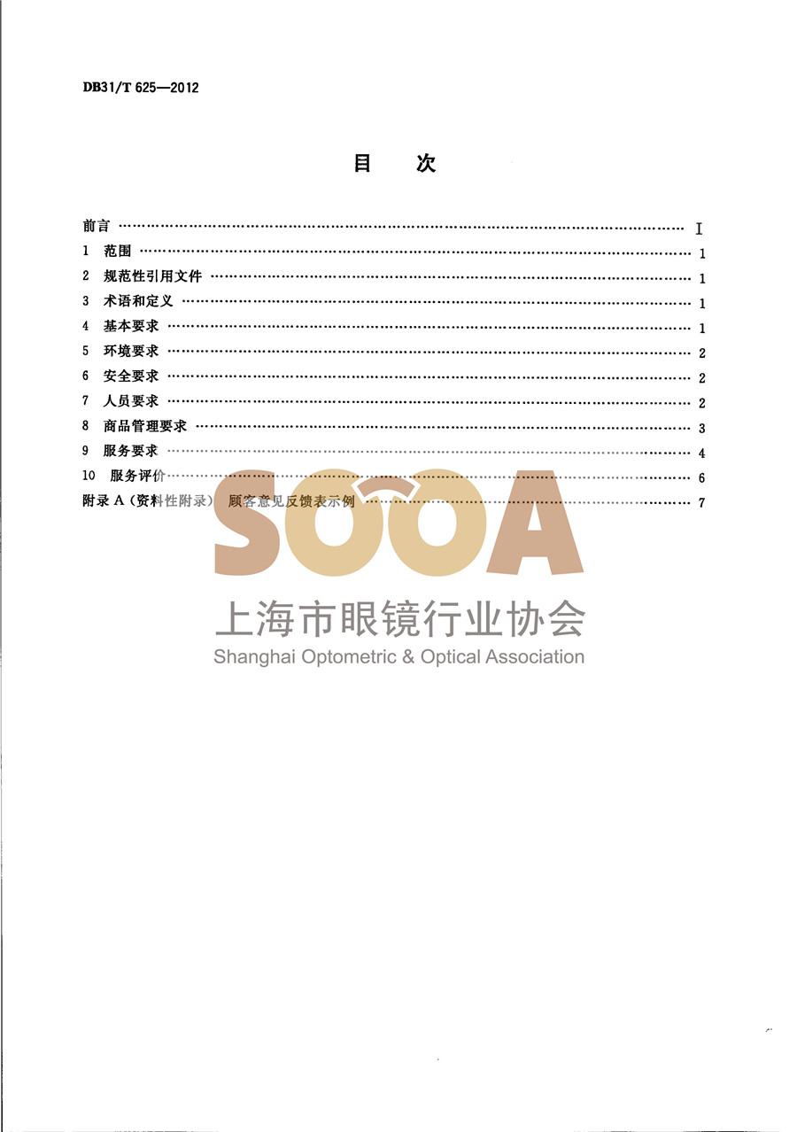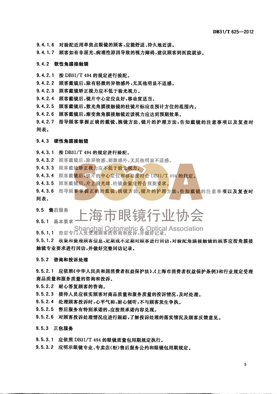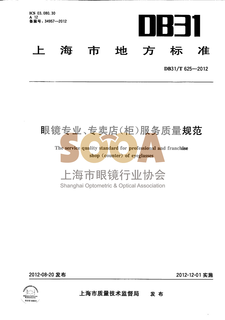 DB31/T625-2012《 眼镜专业、专卖店(柜)服务质量规范》