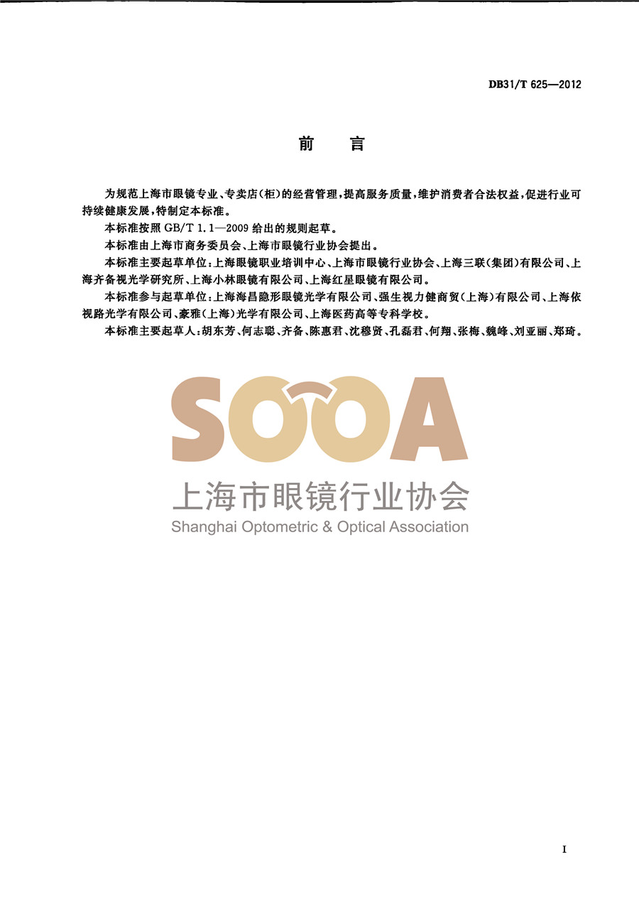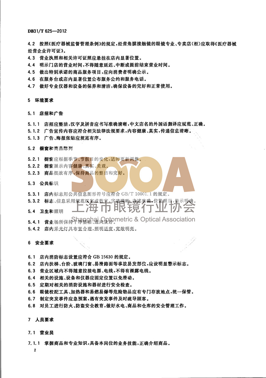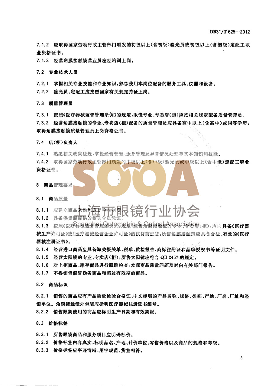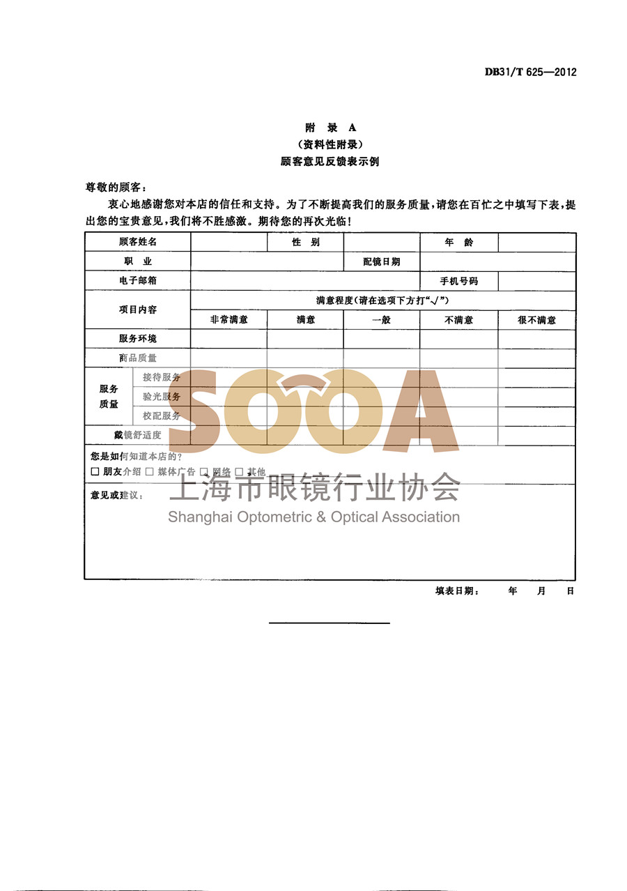 DB31/T625-2012《 眼镜专业、专卖店(柜)服务质量规范》