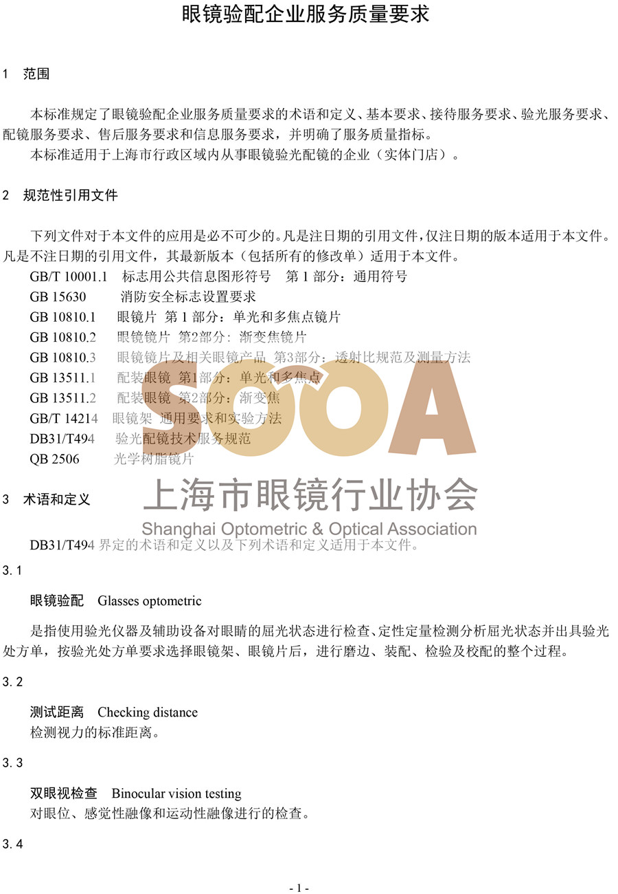T/SOOA-003-2017团体标准《眼镜验配企业服务质量要求》